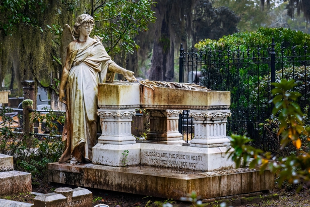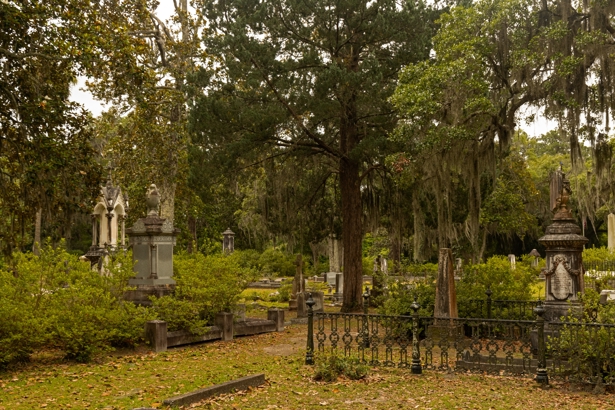 En gåtur gennem Bonaventure Cemetery er som at besøge et udendørs museum. Gravstenene under de majestætiske egetræer med hængende spansk mos skaber en magisk og rolig atmosfære. Denne smukt anlagte kirkegård, der er kendt fra Midnight in the Garden of Good and Evil, er fyldt med historiske monumenter og interessante fortællinger om Savannahs fortid.
