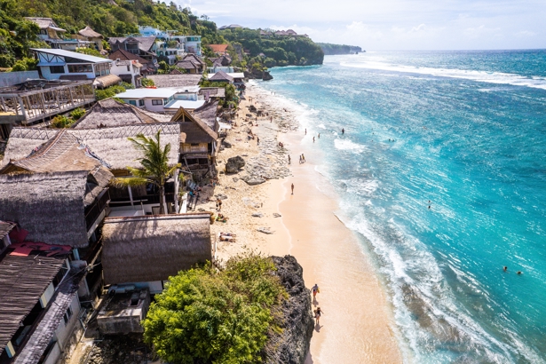 Nusa Dua, Sanur og Jimbaran er blandt de mest populære områder til badeferie med rolige strande og gode hoteller. Canggu og Uluwatu er oplagte valg, hvis du ønsker mere liv og surfstemning.