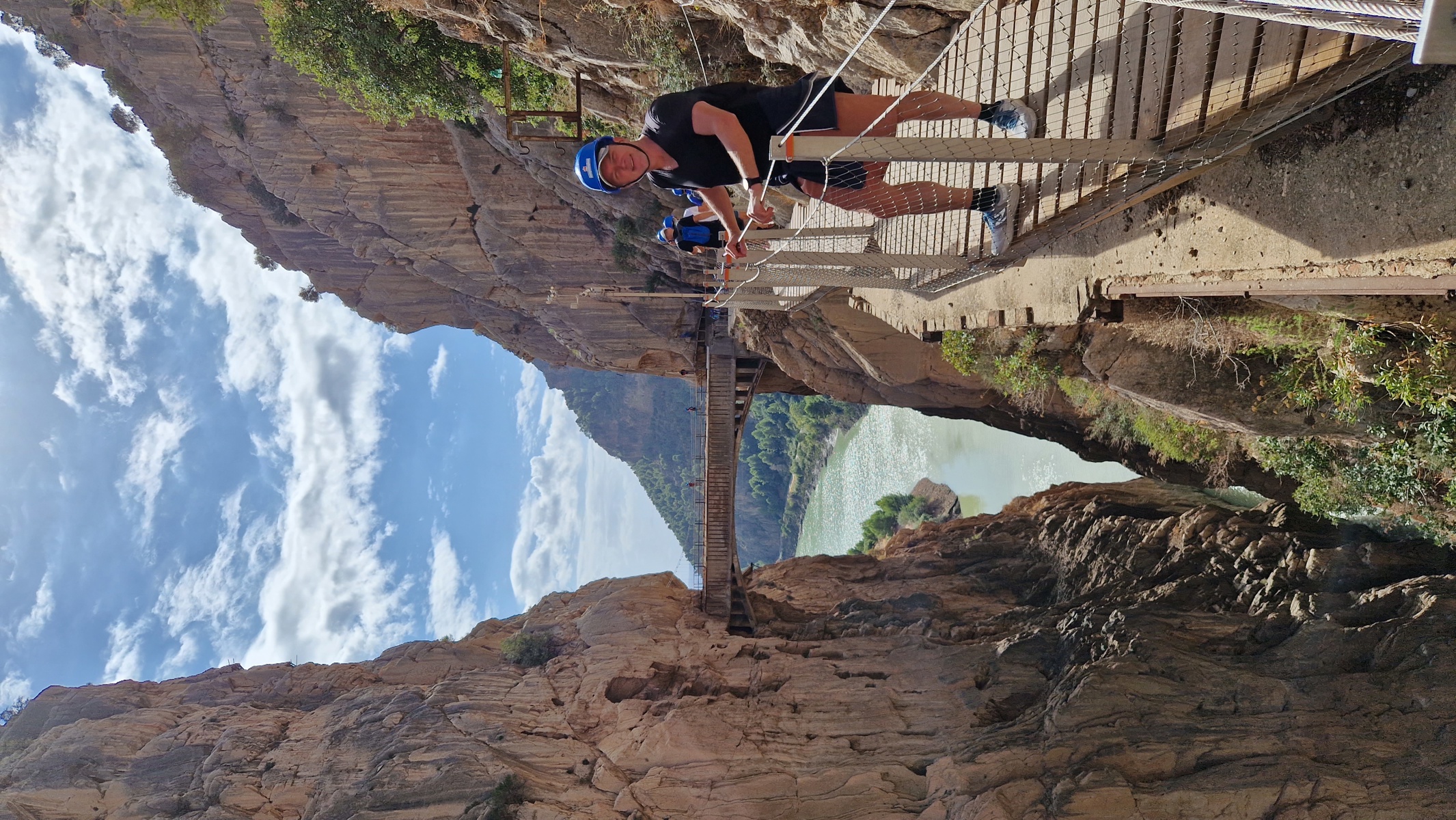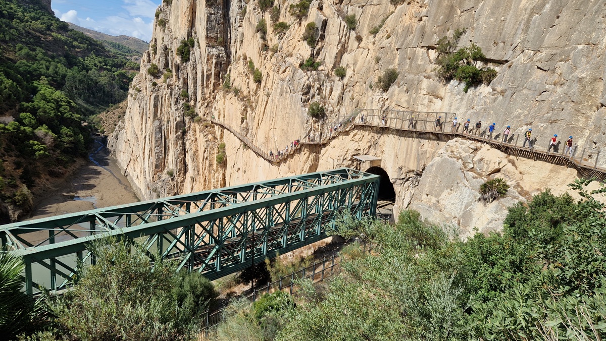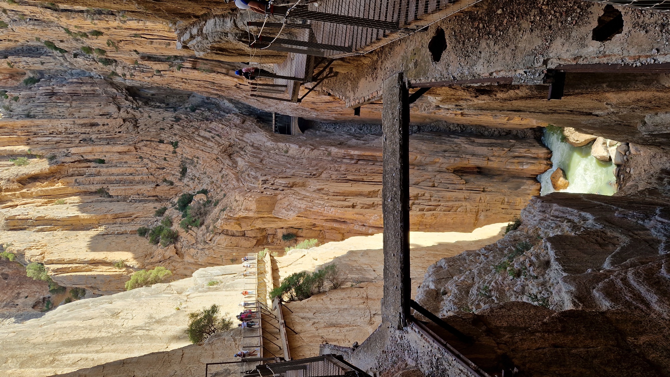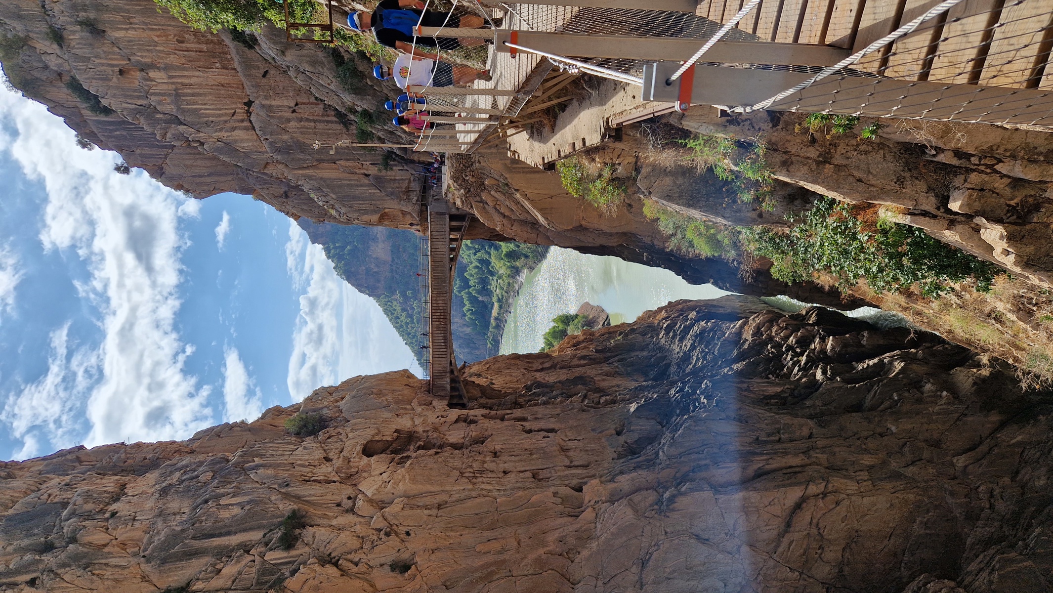 Der findes mange smukke vandreture i Spanien, men Caminito del Rey skiller sig ud, fordi naturen føles så stor og tæt på på én gang. I bevæger jer gennem kløften Desfiladero de los Gaitanes, hvor klippevæggene rejser sig stejlt omkring jer, og hvor nogle af de mest berømte partier følger de ophængte gangbroer langs klippen. Flere steder hænger ruten højt over floden, og i de smalleste dele af kløften er afstanden mellem klippevæggene overraskende lille. Det giver turen en intensitet, som er svær at sammenligne med andre vandreruter.