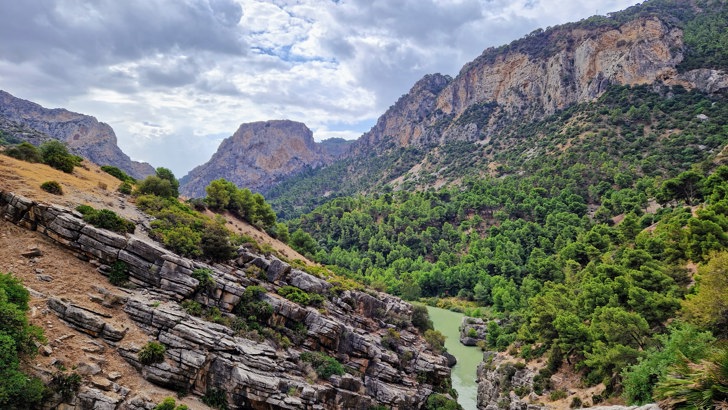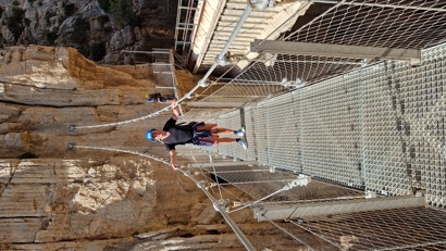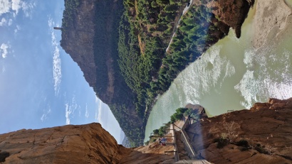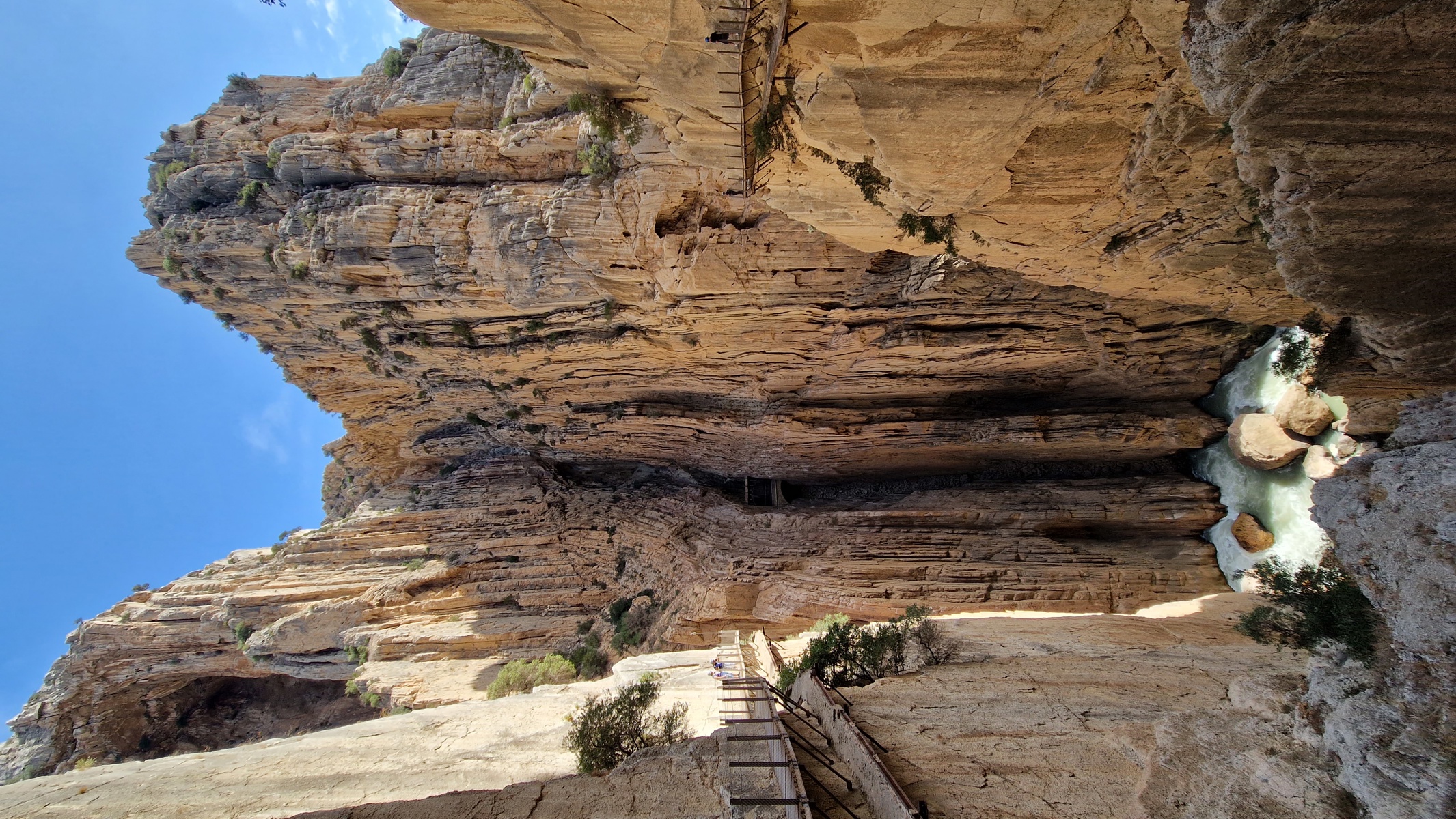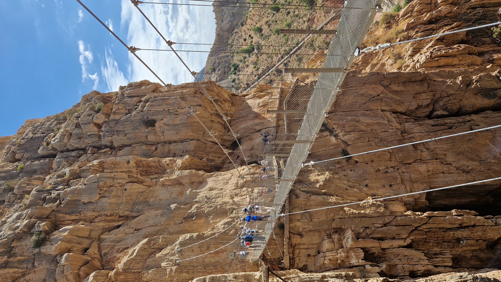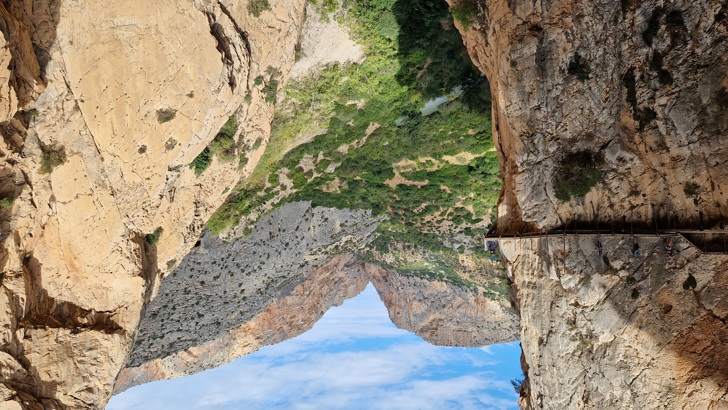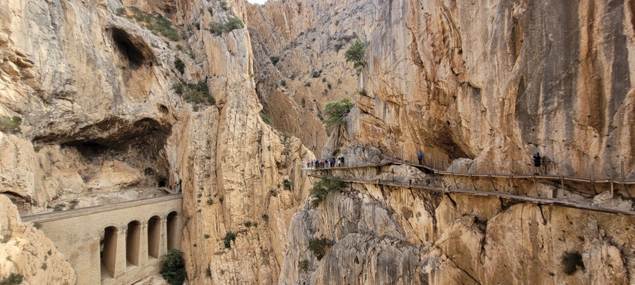 Der findes mange smukke vandreture i Spanien, men Caminito del Rey skiller sig ud, fordi naturen føles så stor og tæt på på én gang. I bevæger jer gennem kløften Desfiladero de los Gaitanes, hvor klippevæggene rejser sig stejlt omkring jer, og hvor nogle af de mest berømte partier følger de ophængte gangbroer langs klippen. Flere steder hænger ruten højt over floden, og i de smalleste dele af kløften er afstanden mellem klippevæggene overraskende lille. Det giver turen en intensitet, som er svær at sammenligne med andre vandreruter.