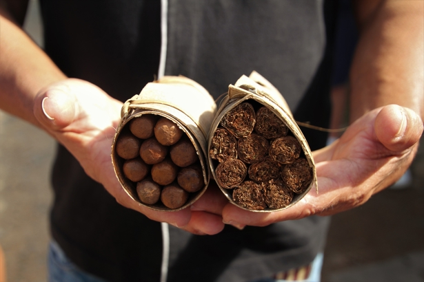 De grønne tobaksplanter dyrkes flere steder på Cuba. På billedet herover ses tobaksmarker ved Vinales i Vuelta Abajo-regionen. Mange tobaksentusiaster mener, at verdens bedste tobak bliver fremstillet netop i Vuelta Abajo-området, hvor tobaksindustrien blev grundlagt omkring år 1830 af spanske koloniherrer fra De Kanariske Øer.