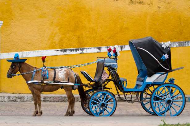 Izamal er en lille, charmerende koloniby, hvor næsten alt er malet i varme gule nuancer, og hvor tempoet føles roligt og lokalt. Mange suser forbi på vej mellem Mérida og Chichén Itzá, men netop derfor har Izamal bevaret sin særlige stemning. Her møder I små torve, stille gader og hestevogne, der stadig triller forbi som en del af hverdagen. Det er en oplagt pause på rundrejsen, når I har lyst til noget mere autentisk og afslappet.