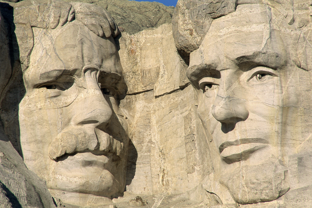 Mount Rushmore er et kæmpe klippemonument med ansigterne af fire amerikanske præsidenter hugget ind i granitklippen: