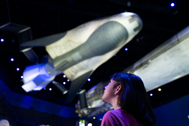 Rumfærgen Space Shuttle Atlantis er udstillet i en dramatisk opsætning, hvor I virkelig kan se detaljerne tæt på. Her er også interaktive oplevelser og en simuleret opsendelse.