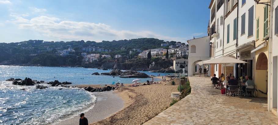 Llafranc har en lidt anden karakter end Tamariu. Hvor Tamariu føles som en lille, beskyttet lomme, åbner Llafranc sig mere mod havet med sin brede bugt og den elegante strandpromenade, der følger vandet i en blød bue. Her er stadig roligt og overskueligt, men stemningen har et strejf af klassisk badeby.