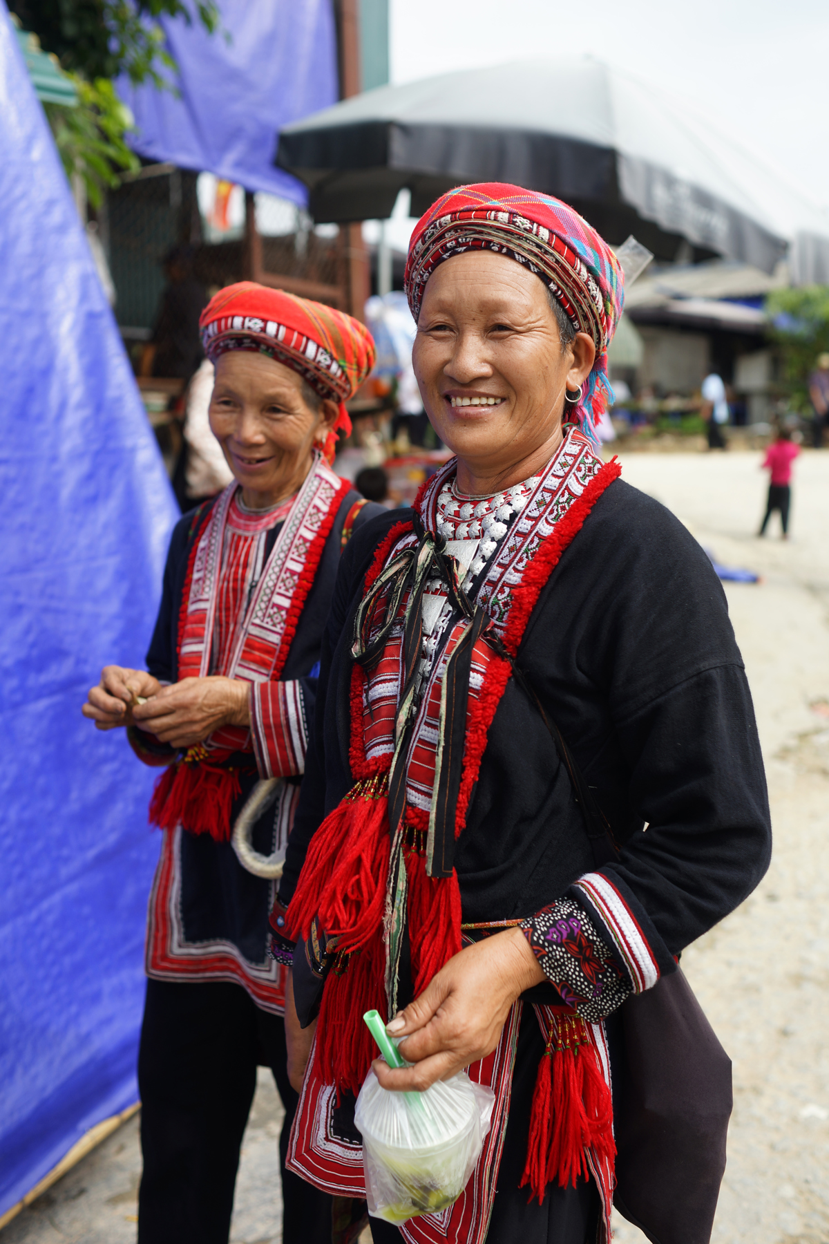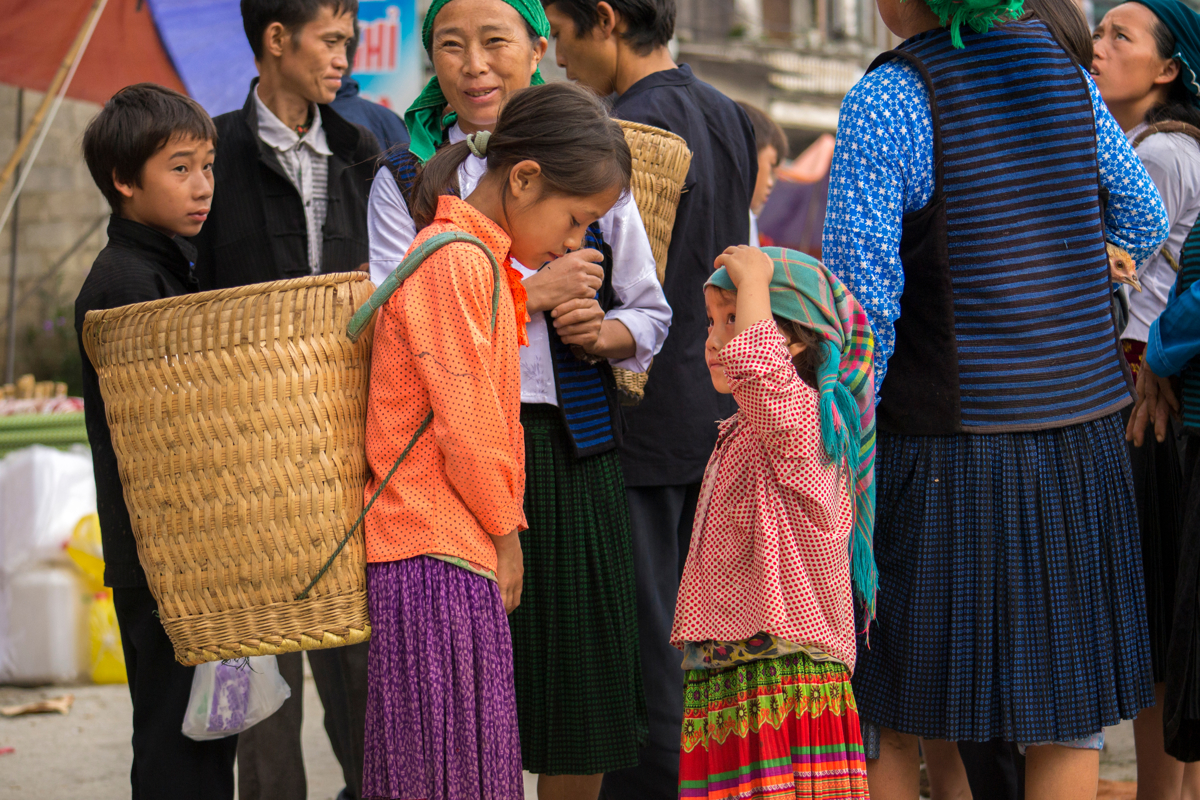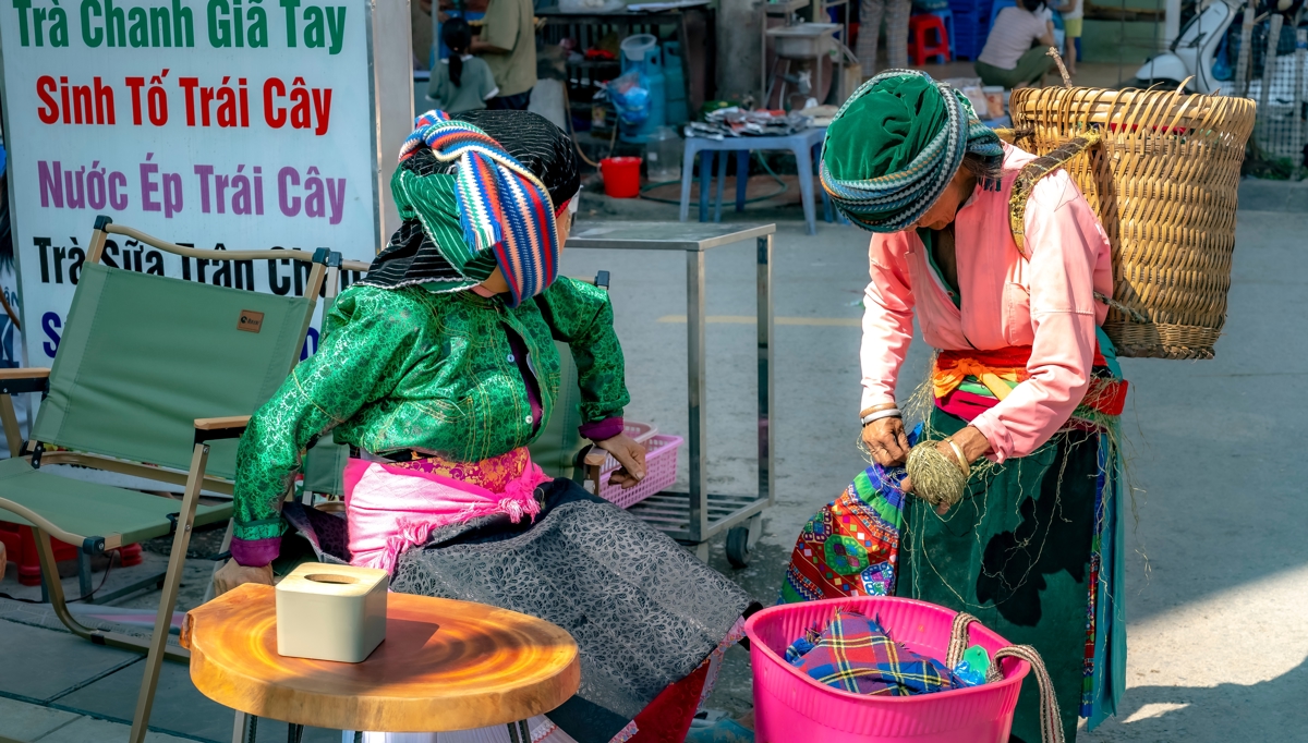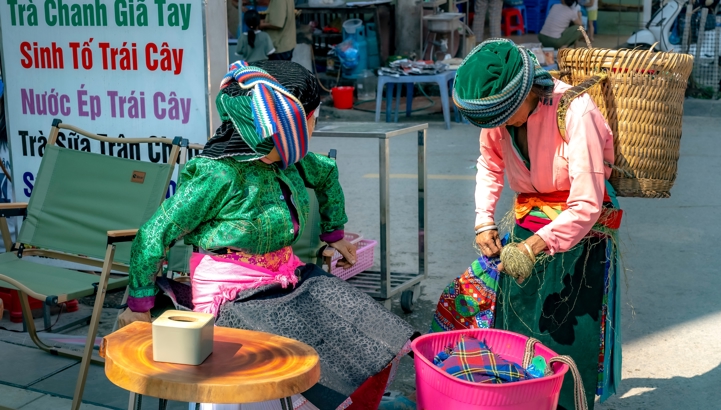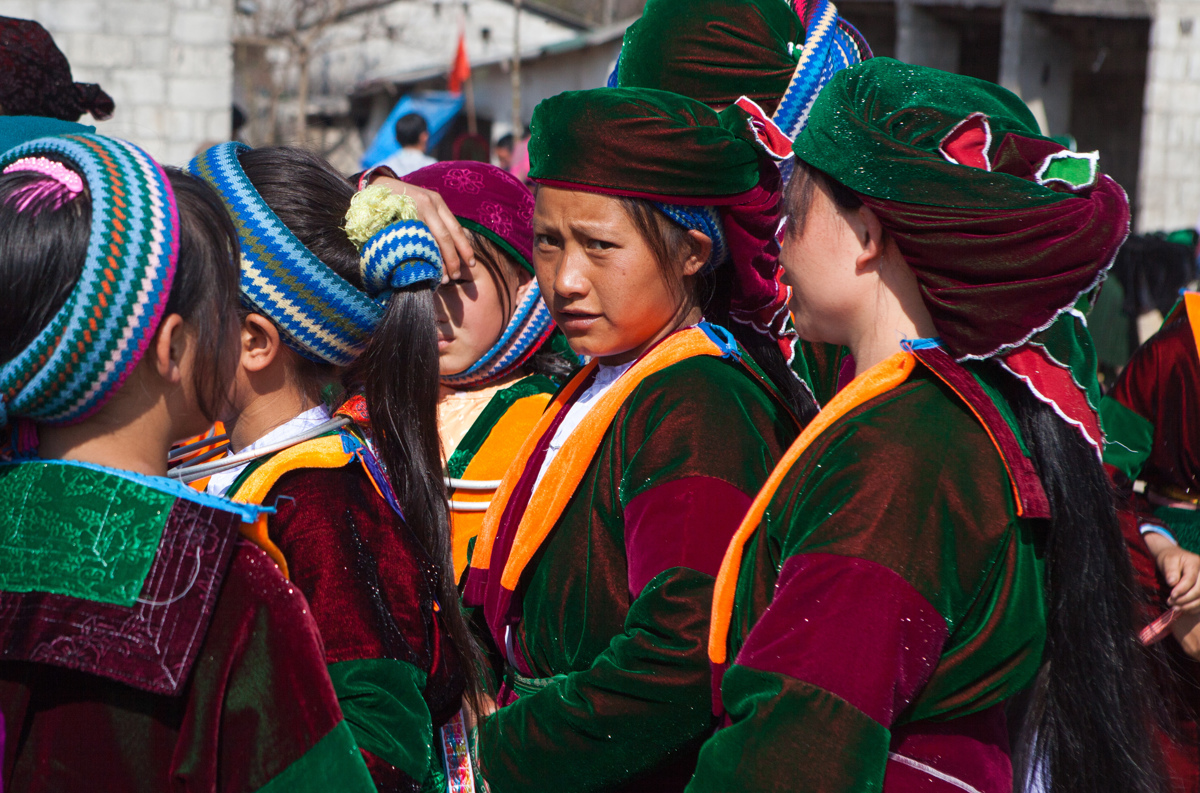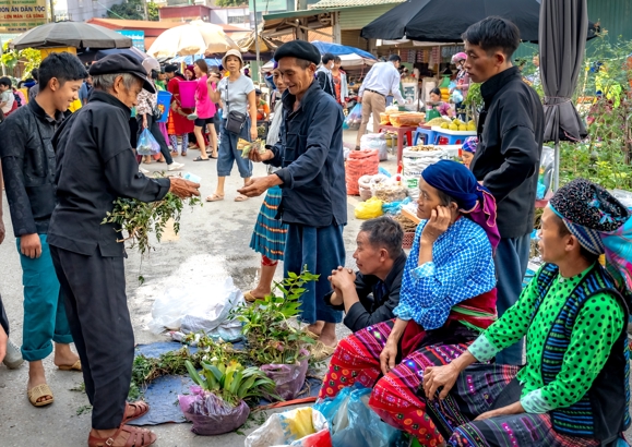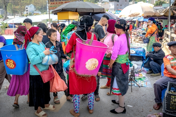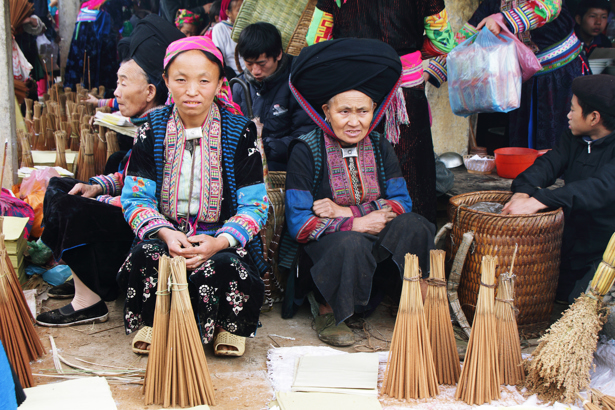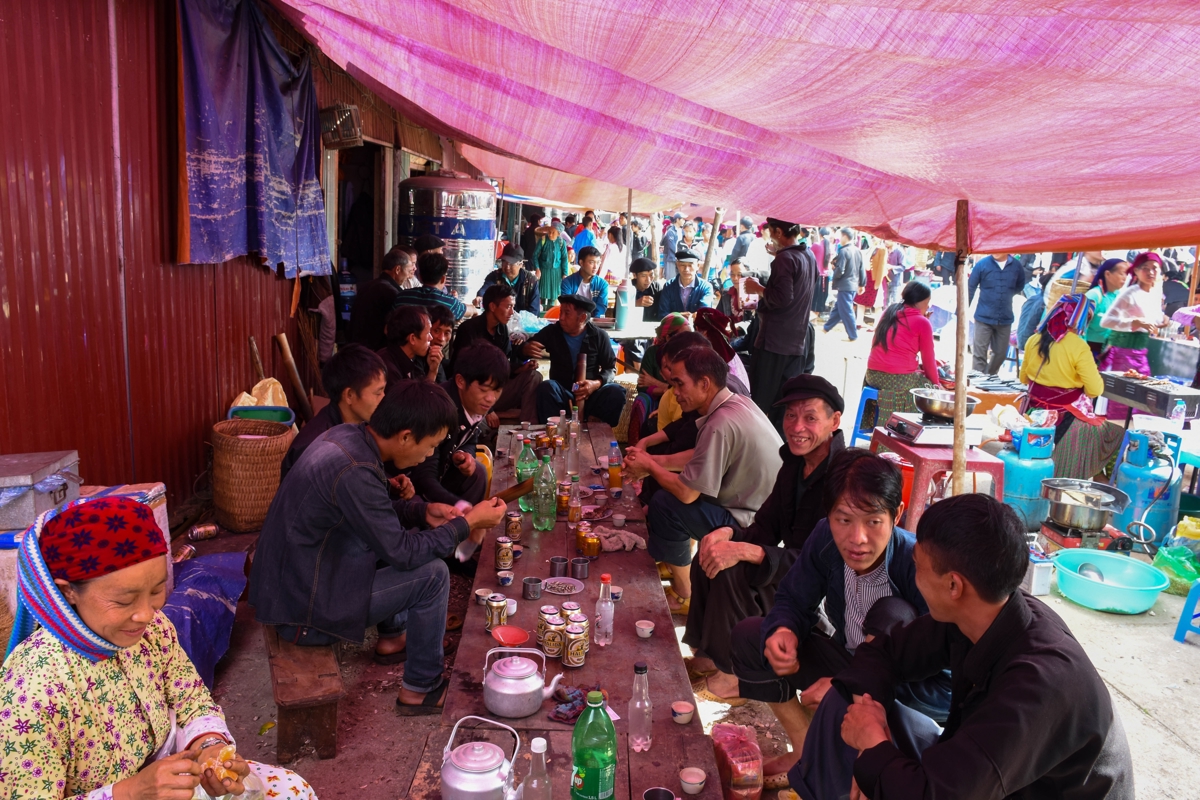 Mange folkeslag mødes på markederne, blandt andet traditionelle Dzao'er i deres sorte og indigoblå dragter samt Langdang Dzao'er i sorte dragter med broderede kantbånd og smukke sølvprydede hovedbeklædninger. Disse har selskab af folk fra blandt andet hvid H'mong, Nung og Tay. Det kan være svært for uindviede at se forskel på de mange forskellige folkeslag, men heldigvis begår jeres lokale guide sig hjemmevant i dette område og kan nemt fortælle, hvad I skal ligge mærke til i folkenes klædedragter. Selv på disse kanter bliver vestligt tøj dog mere og mere almindeligt, men især de ældre generationer trækker hellere i de traditionelle dragter, når muligheden byder sig.