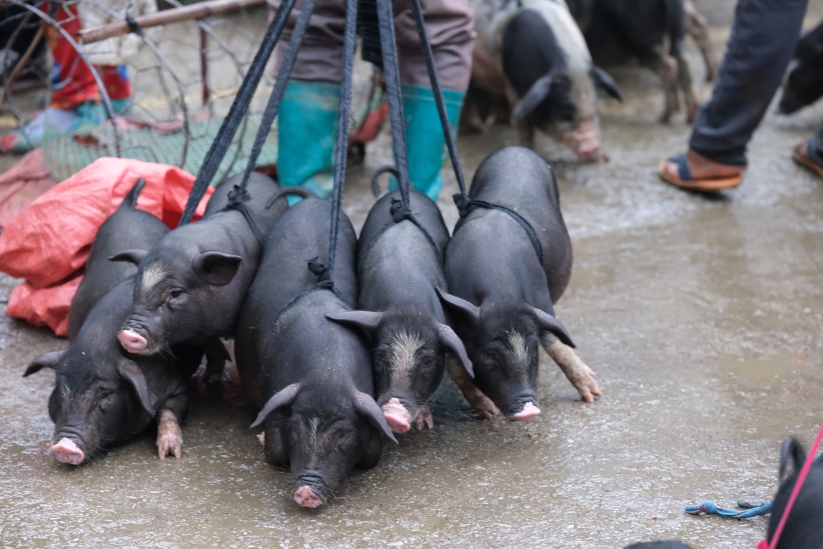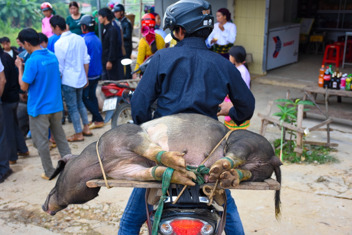 Markedet i Meo Vac er særlig kendt for sit store udbud af husdyr og potentielle slagtervarer. Køer, vandbøfler, geder, høns, ænder og hundehvalpe skifter hænder til højestbydende, og det går ikke altid stille for sig, når sælger og køber råber om kap med de skrigende grise, der er ved at skifte hænder.