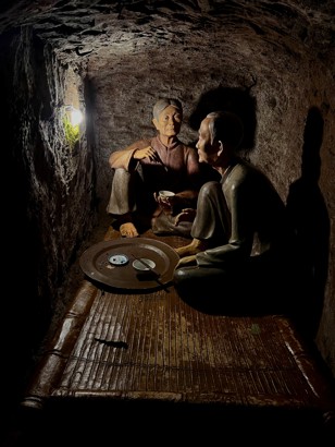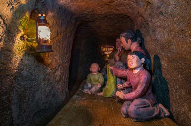 Turen fortsætter til Vinh Moc-tunnellerne, hvor lokalbefolkningen bogstavelig talt gravede sig ned under krigen for at overleve de voldsomme bombardementer. Over 90 familier boede her i næsten ti år. Tunnelsystemet er på mere end og fordeler sig i 3 niveauer under jorden. Her fandtes både fødestue, hospital, køkken og opholdsrum, så livet kunne fortsætte trods de konstante bombardementer.