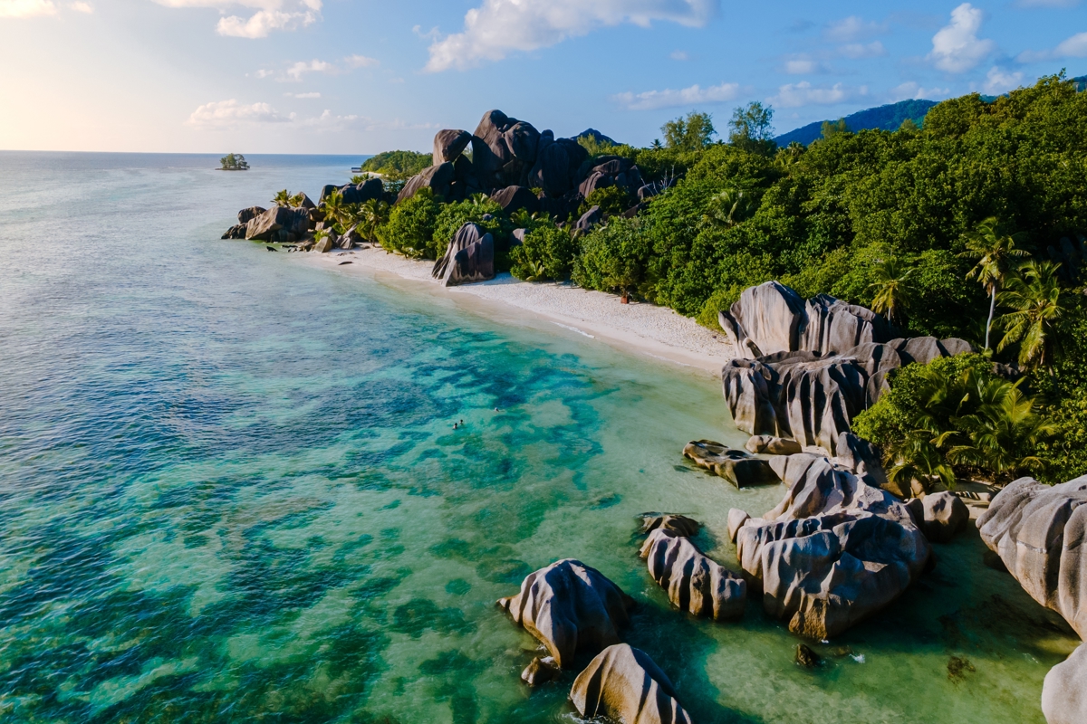 Kan man snorkle direkte fra stranden på Seychellerne?