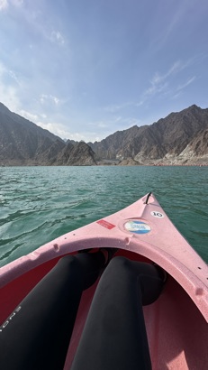 Under mit stopover tog jeg en tur til Hatta, der ligger cirka en time fra Dubai. Her blev jeg mødt af en helt anden side af Emiraterne – den vilde natur og de imponerende bjerge. Jeg fik kun en lille forsmag på, hvad området har at byde på, men det var nok til at forstå, hvorfor Hatta er et mekka for udendørs eventyr. Jeg prøvede mountainbikekørsel i dalen, hvor de udfordrende stier ved Hatta-bjergene gav mig en oplevelse af både spænding og naturens skønhed. Der er også fantastiske muligheder for vandreture, hvis man vil udforske området til fods. En af de mest afslappende oplevelser var min korte, men hyggelige kajaktur på Hatta Dam, hvor jeg gled gennem det krystalklare vand med bjergene som baggrund. Hvis du er mere til udendørs eventyr end byliv, kan et stopover i Dubai også byde på denne roligere og naturnære oplevelse!
