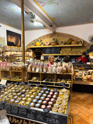 Vi fulgte to af de ruter, som Henrik fra Check Point Travel havde anbefalet, men tog også spontane afstikkere undervejs. Ruterne var perfekte i længde og bød på den ene betagende udsigt efter den anden over vinmarker, olivenlunde og det smukkeste landskab. Vi gjorde holdt ved en gård, der producerer parmesan og andre oste, og vi gik på opdagelse i deres lækre lille delikatessebutik. Vi fik en uventet og helt særlig oplevelse, da vi tilfældigt passerede en lille vinproduktion, hvor de netop havde høstet vin og var i gang med at presse saften ud af duerne. Trods sprogbarrierer fornemmede vi en ægte stolthed over deres håndværk, og vi fik lov at smage de nyplukkede druer.