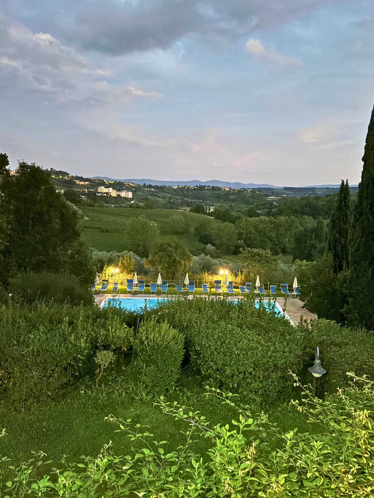 Vi ankom fredag eftermiddag og tjekkede ind på det charmerende, lidt old school, familiedrevne hotel ”Villa Ducci”, som ligger i udkanten af San Gimignano. Hotellet emmer af italiensk charme, personalet var søde og opmærksomme og maden var fremragende. Efter en lækker frokost og et par timers afslapning ved den fine pool blev fire flotte røde Vespa’er leveret ved hotellet. Roberta fra udlejningsfirmaet gav sig god tid og gav os en grundig introduktion til Vespaerne. Vi fik udleveret kort over området samt forud programmerede ruter på en GPS, og Roberta tog sig god tid og svarede tålmodigt på alle vores mange spørgsmål.