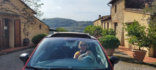 Dernæst går turen ned på hotellets parkeringsplads. Her får I en introduktion til bilen og får udleveret nøglerne. I kan godt begynde at glæde jer. For det er fantastisk at få lov til at opleve og udforske Toscana i en Fiat 500 Cabriolet.