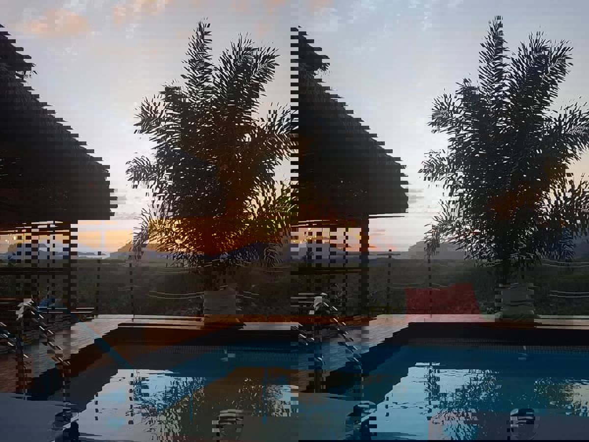 Her er I tæt på naturen og dens lyde, men kan stadigvæk sove i rigtige senge, nyde et fuldt udstyret badeværelse med varmt vand i hanen og et vestligt toilet. Fra terrassen kan I beundre udsigten fra verandaen, og alt i alt får I en naturoplevelse på 1. klasse.
